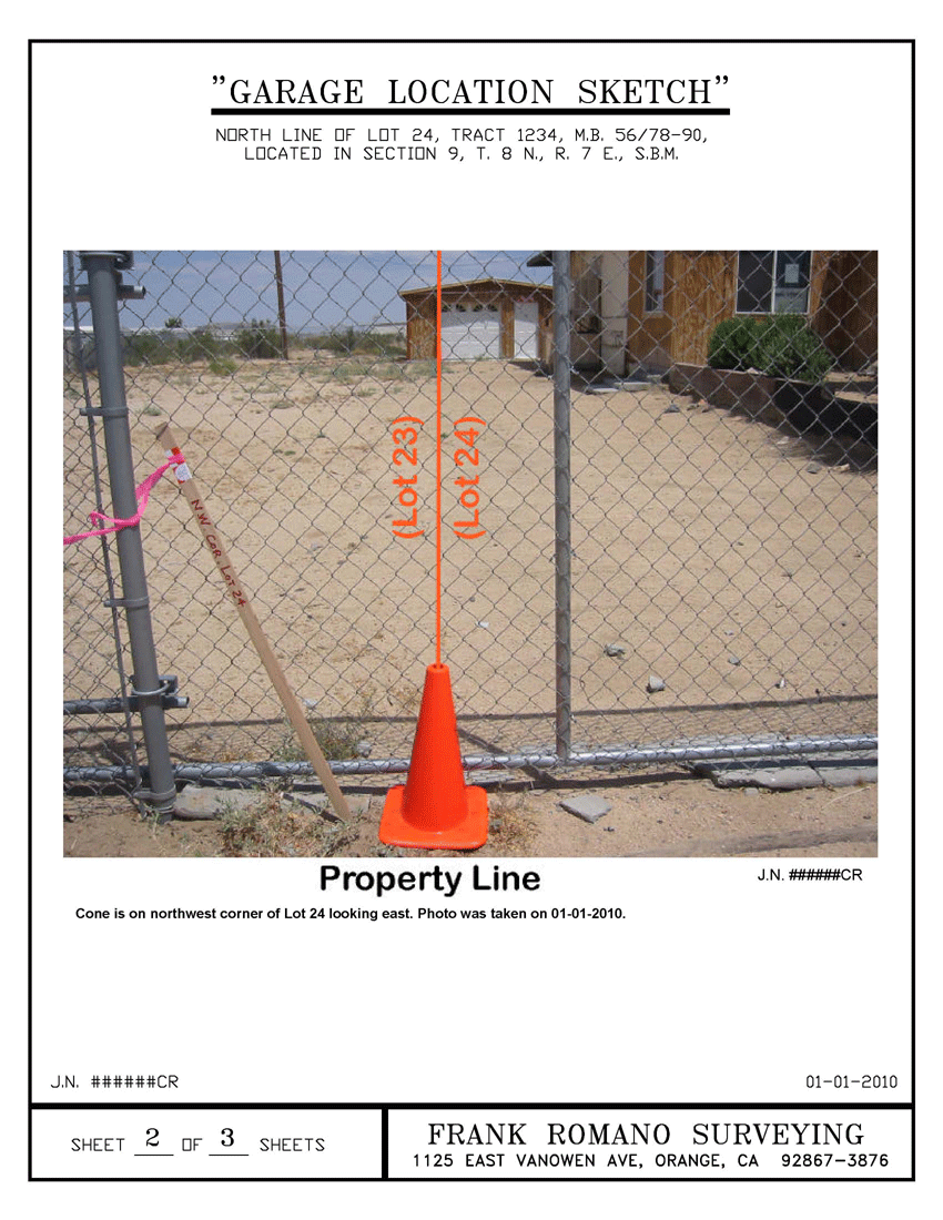 A surveyor sometimes uses sketches and photographs to visually illustrate encroachment of items discovered while performing a survey such as, buildings and fences. |
